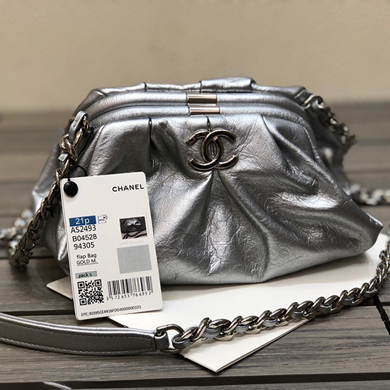 Small Chanel Sequins Shoulder Bag Silver AS4561