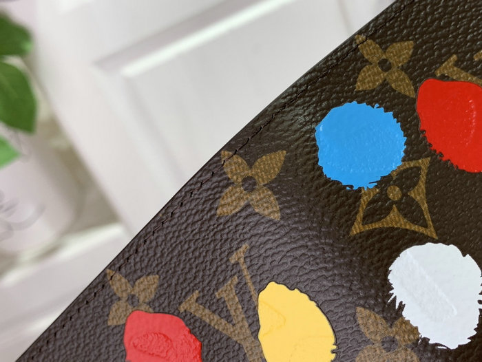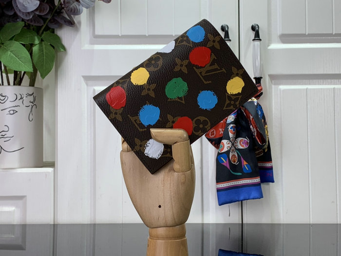 Monogram coated canvas with 3D Painted Dots print Grained cowhide leather lining Gold-colour hardware Inside LV x YK signature Card slots Flat pocket 2 flying pockets Size: W10 x H14 x D2.5 cm (1" = 2.54cm) It come with serial numbers, card, dust bag and care booklet.