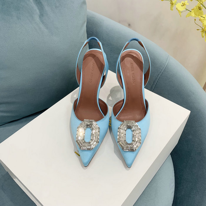 Amina Muaddi Satin Camelia Slingback Pumps AM02