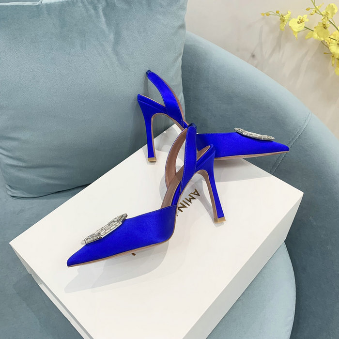 Amina Muaddi Satin Camelia Slingback Pumps AM03
