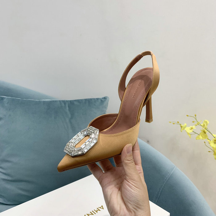 Amina Muaddi Satin Camelia Slingback Pumps AM10