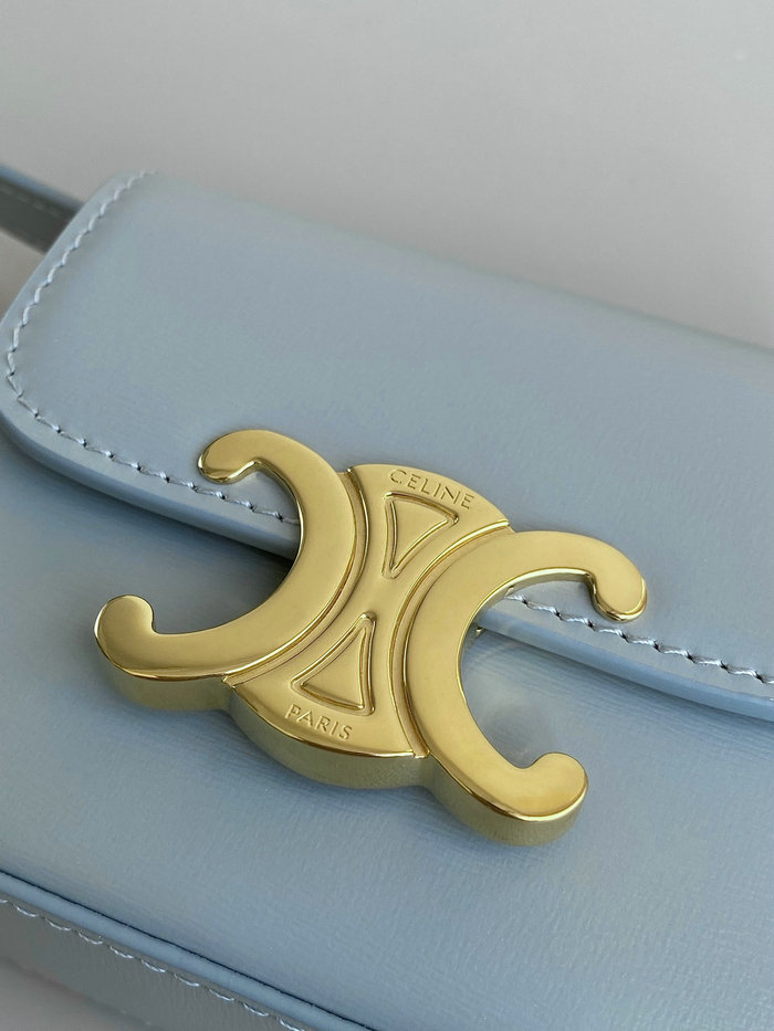 Shiny Calfskin Calfskin Lining Gold Finishing Hand Carry, Shoulder Carry And Cross-body Carry Triomphe Snap Button Closure One Inner Flat Pocket Size: W11 x H8 x D4 cm (1" = 2.54cm) It come with serial numbers, card, dust bag and care booklet.