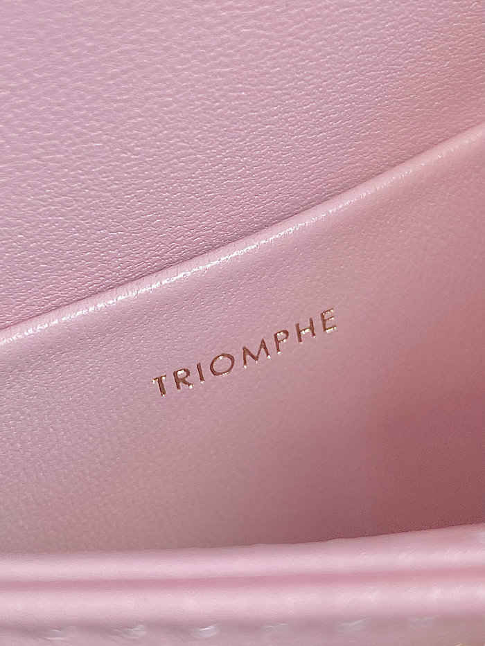 Shiny Calfskin Lambskin Lining Gold Metal Hardware Cross-body And Shoulder Carry Triomphe Metallic Closure Inner Zipped Pocket And Flat Pocket Size: W18.5 x H14 x D6 cm (1" = 2.54cm) It come with serial numbers, card, dust bag and care booklet.