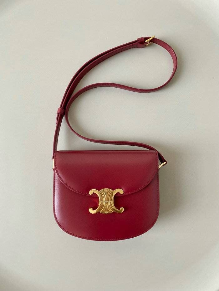 Shiny Calfskin Lambskin Lining Gold Finishing Cross-body and Shoulder Carry Metallic Triomphe Closure Three Inner Compartments Inner Zipped Pocket And Flat Pocket Size: W18.5 x H16 x D6 cm (1" = 2.54cm) It come with serial numbers, card, dust bag and care booklet.