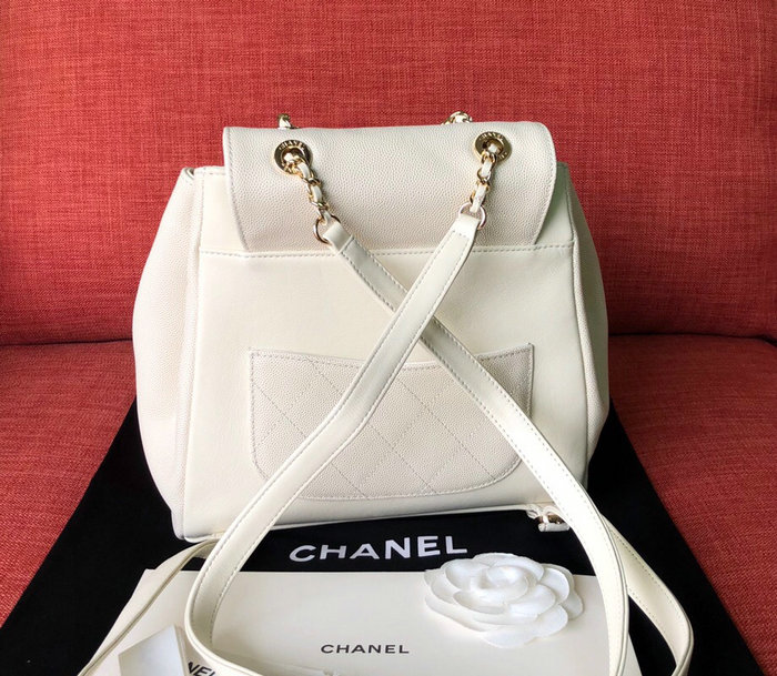 Chanel Grained Calfskin Backpack White A93748 - Grained Calfskin Size: W25 X H24 X D17 cm (1" = 2.54cm) It comes with: Serial and model numbers,the dust bag,care booklet, cards