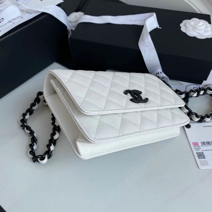 Chanel Grained Calfskin Wallet On Chain White AP1954