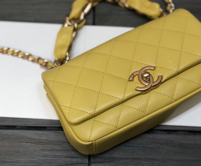Chanel Lambskin Flap Bag Yellow AS2388 - Lambskin Size: W23 x H14 x D6.5 cm (1" = 2.54cm) It come with serial numbers, card, dust bag and care booklet.