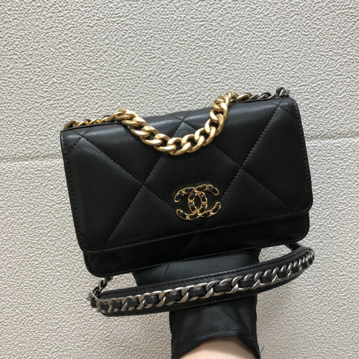 Chanel Lambskin Flap Chain Wallet Black A15011 - Lambskin Size: W19 cm(1" = 2.54cm) It come with serial numbers, card, dust bag and care booklet.