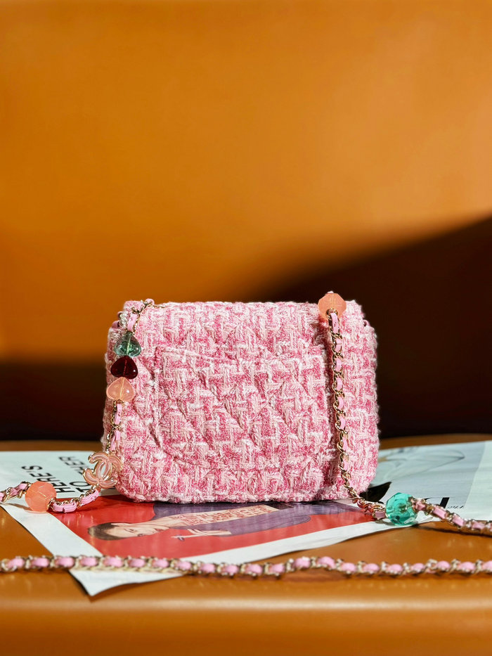 Tweed, Resin and Leather Size: W16 x H12.5 x D4.5 cm(1" = 2.54cm) It come with serial numbers, card, dust bag and care booklet.