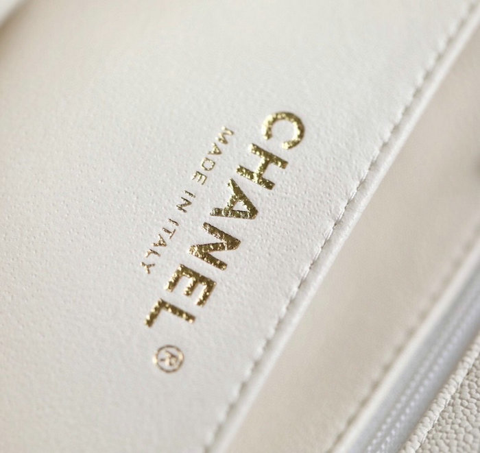 Chanel mini flap bag with top handle White AS2431 - Grained Calfskin Size: W20 x H13 x D9 cm (1" = 2.54cm) It come with serial numbers, card, dust bag and care booklet.