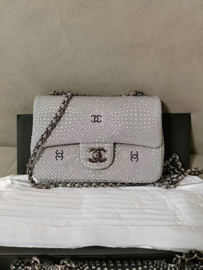 Canvas, Leather, Crystal Size: W20 cm (1" = 2.54cm) It come with serial numbers, card, dust bag and care booklet.
