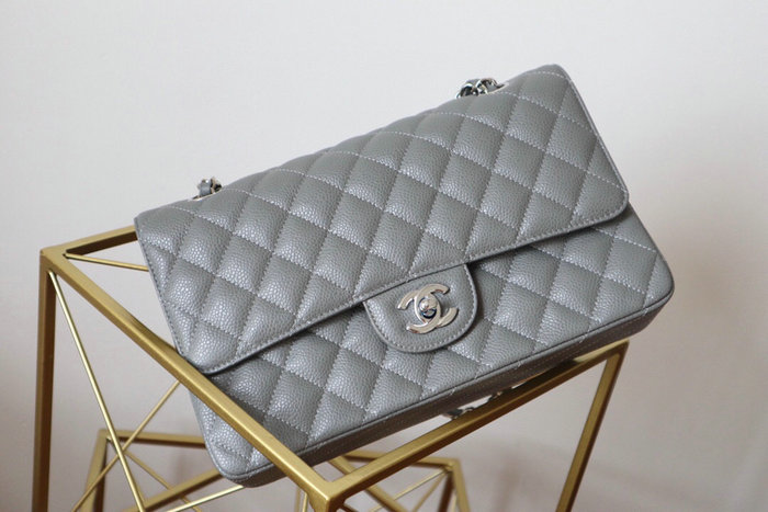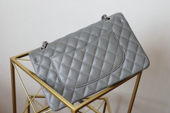 - Classic Chanel Caviar Leather Flap Shoulder Bag Grey A1112
