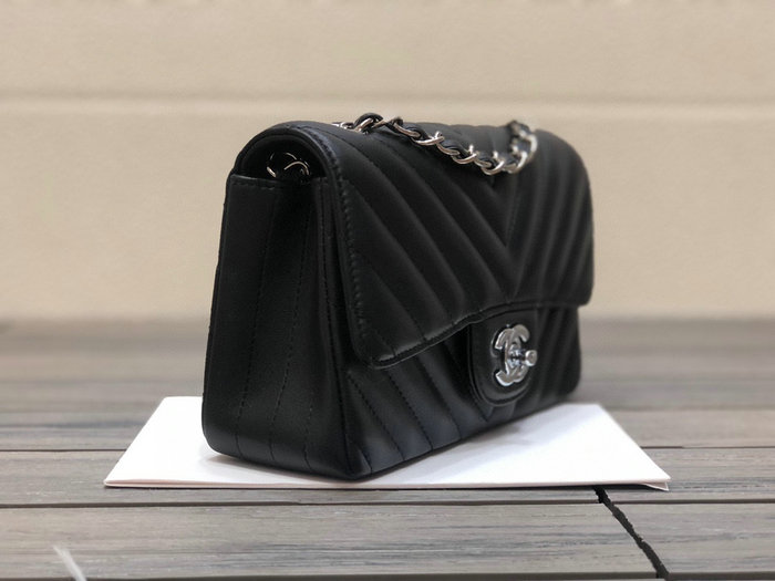 - Classic Chanel Chevron Small Flap Bag Black with Silver CF1116