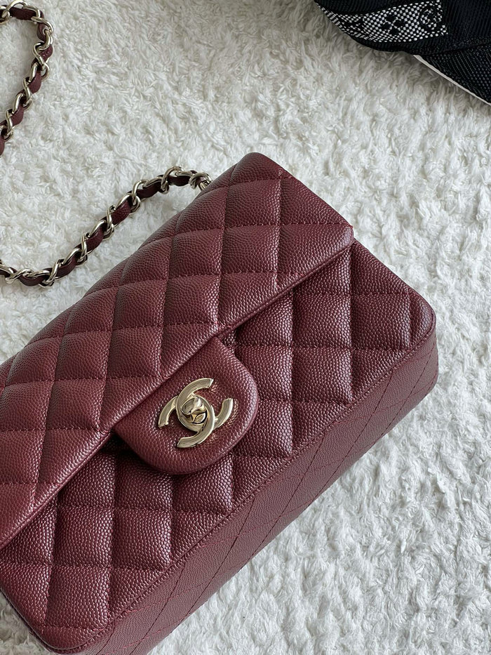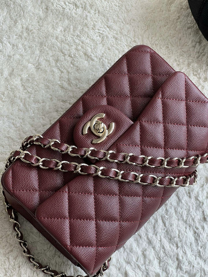 - Classic Chanel Grain Calfskin Small Flap Bag Burgundy CF1116