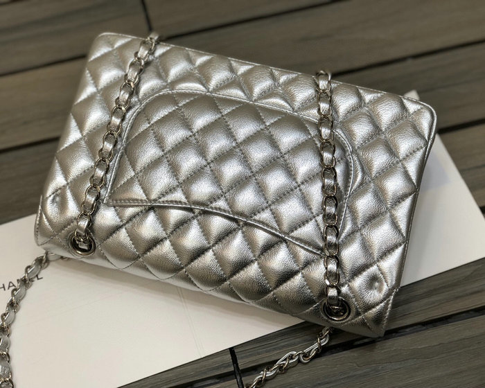 Classic Chanel Lambskin Medium Flap Bag Silver CF1112 - Lambskin Size: W25 (1" = 2.54cm) It come with serial numbers, card, dust bag and care booklet.