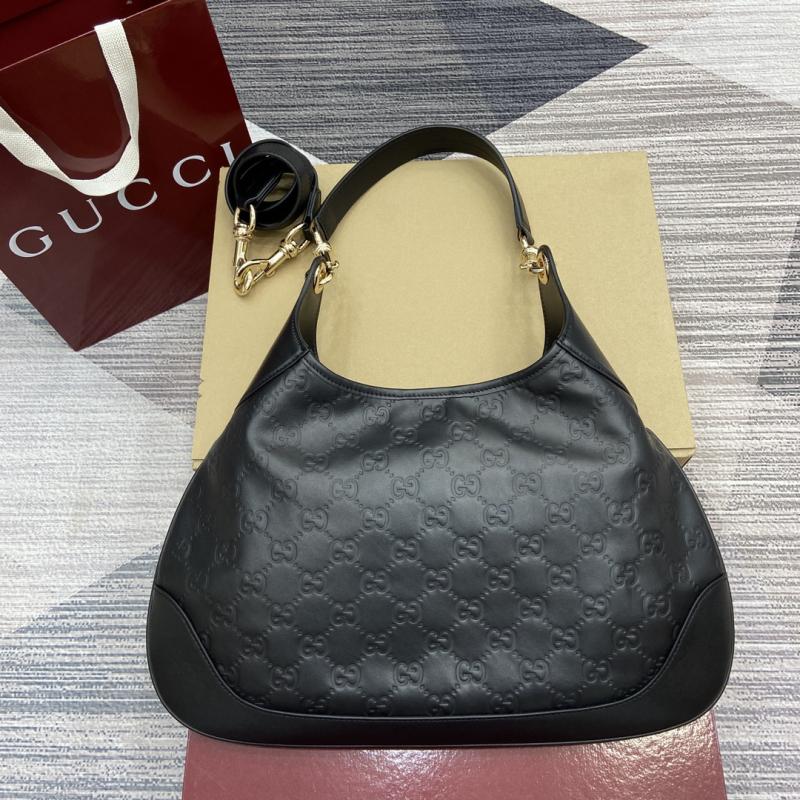 Black GG embossed leather Black leather trim Light gold-toned hardware Top handle with hook closure Inside: zip pocket Magnetic closure Size: W42 x H36 x D2 cm (1" = 2.54cm) It come with serial numbers, dust bag and care booklet.