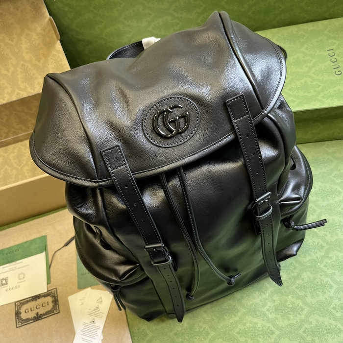Leather Enamel hardware Original GG canvas lining Double G Mesh back Two side zip pockets Inside: 1 zip pocket Top handle Adjustable shoulder straps Drawstring and double buckle closure Size: W38 x H44 x D15 cm It come with serial numbers, card, dust bag and care booklet.