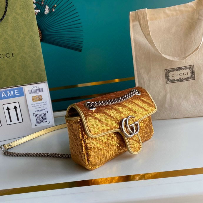 Gucci GG Marmont Mini Sequin Shoulder Bag Gold 446744