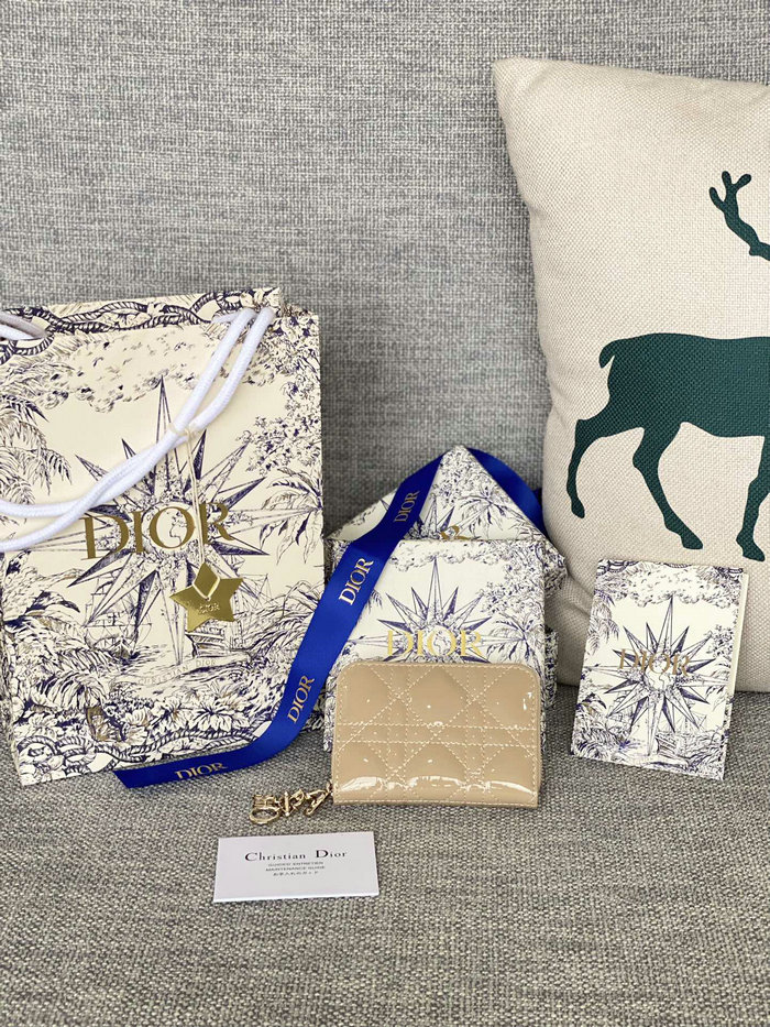 Patent Detachable D.I.O.R. charm 3 compartments, 1 zipped 4 card slots Size: W12 x H8.5 cm (1" = 2.54cm) It come with serial numbers, card, dust bag and care booklet.