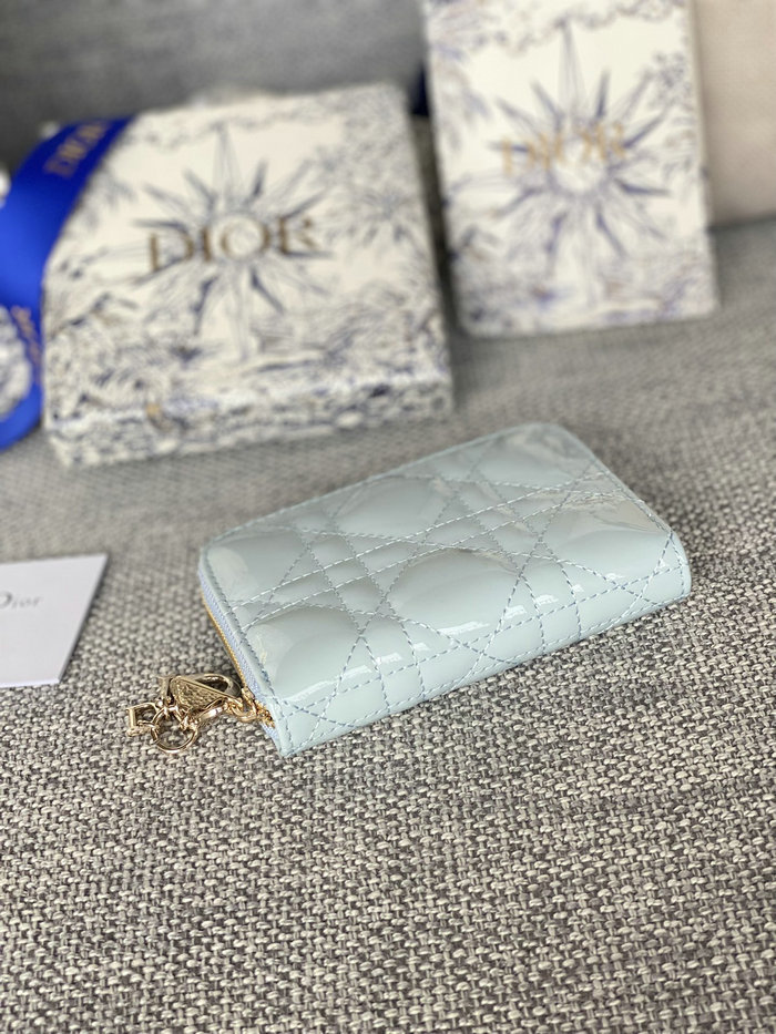 Patent Detachable D.I.O.R. charm 3 compartments, 1 zipped 4 card slots Size: W12 x H8.5 cm (1" = 2.54cm) It come with serial numbers, card, dust bag and care booklet.