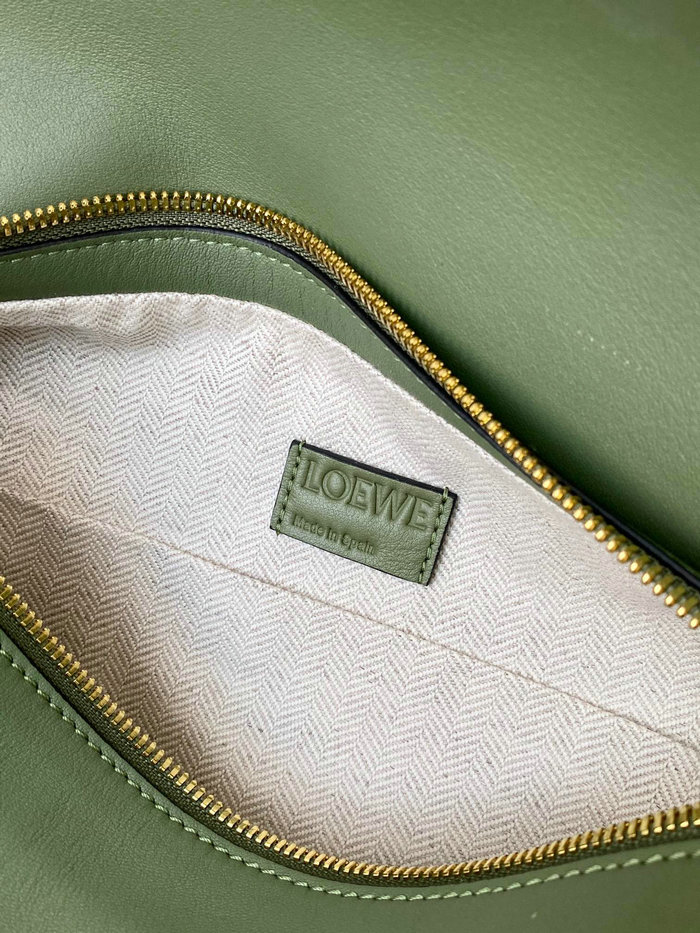 Loewe Puzzle Hobo Shoulder Bag Green 51067 Calfskin Signature debossed Anagram motif Gold-tone hardware Concealed top zip fastening single shoulder strap Main compartment Rear zip-fastening pocket Size: W28.7 x H10.7 x D14 cm (1" = 2.54cm) It come with serial numbers, card, dust bag and care booklet.
