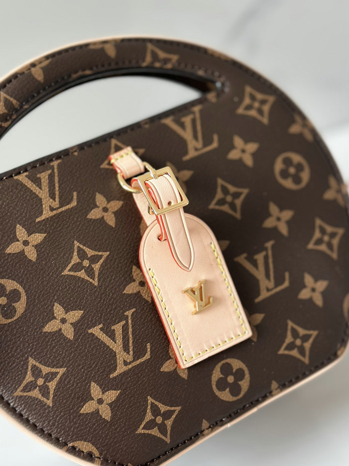 Monogram coated canvas Cowhide-leather trim Microfiber lining Gold-color hardware Flat back pocket Magnetic clasp Strap:Removable, adjustable Size: W22.5 x H21 x D7 cm (1" = 2.54cm) It come with serial numbers, card, dust bag and care booklet.