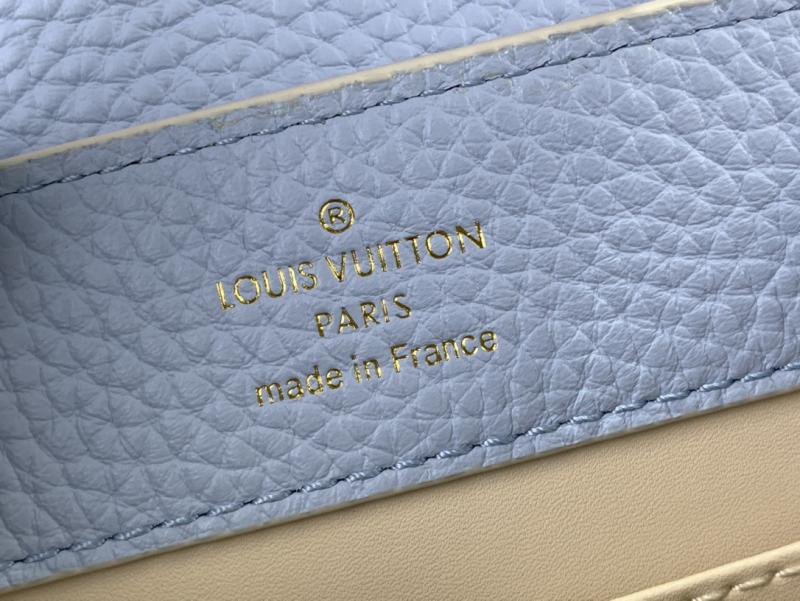 Taurillon leather Taurillon-leather trim Cowhide-leather lining Gold-color and enamel-finish hardware Capucines Cutie accessory Compartmented interior with flat pocket 4 protective metal bottom studs Strap : Removable, not adjustable Size: W21 x H14 x D8 cm (1" = 2.54cm) It come with serial numbers, dust bag and care booklet.