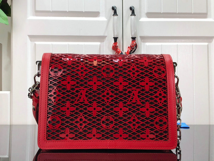 Patent calfskin Cowhide-leather trim Microfiber lining Red-color hardware Magnetic front lock Two inside compartments Inside back flat pocket Strap: Removable, adjustable Size: W25 x H17 x D10.5 cm (1" = 2.54cm) It come with serial numbers, card, dust bag and care booklet.
