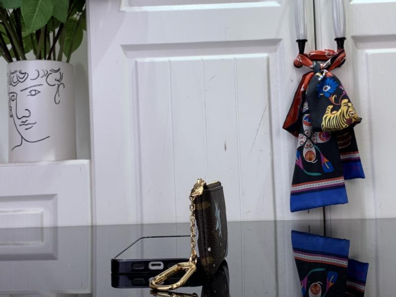 Monogram / Azur Frost Coated canvas Grained Cowhide-leather lining Gold-toned hardware Vivienne-shaped metallic zip closure Key ring Chain with hook Size: W12 x H7 x D1.5 cm (1" = 2.54cm) It come with serial numbers, dust bag and care booklet.