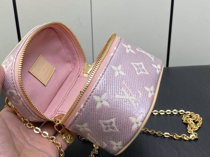Monoglam coated canvas Microfiber lining Gold-color hardware Double zip closure Removable mirror Chain: Removable Size: W11 x H10 x D8 cm (1" = 2.54cm) It come with serial numbers, card, dust bag and care booklet.