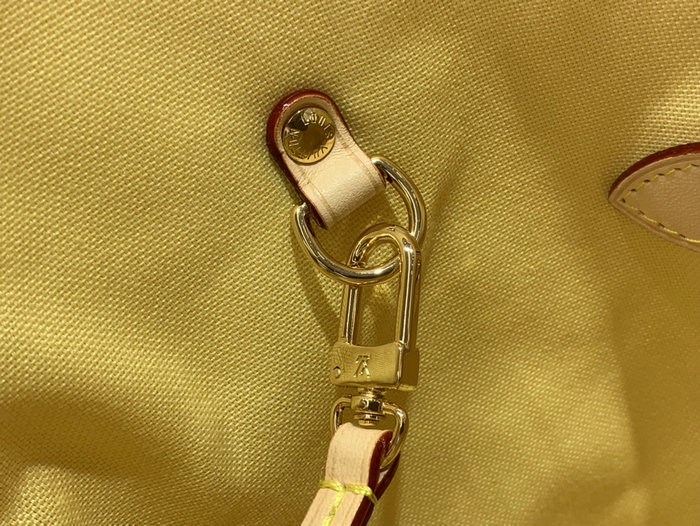 Peach Damier Giant coated canvas Cowhide-leather trim Twill lining Gold-color hardware Hook closure Flat printed zipped inside pocket Removable zipped pouch 4 side laces D-ring Fits: smartphone, wallet, earphones, 13-inch laptop, and keys Size: W31 x H28 x D14 cm (1" = 2.54cm) It come with serial numbers, card, dust bag and care booklet.