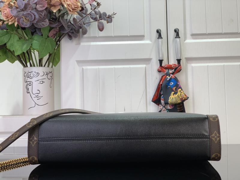 Black Calfskin leather Monogram-canvas trim Microfiber lining Gold-toned hardware Leather shoulder tabs 1 name tag 1 inside flat pocket Fits: laptop, A4 documents Chain: Sliding, non-removable Size: W37 x H36 x D10 cm (1" = 2.54cm) It come with serial numbers, dust bag and care booklet.