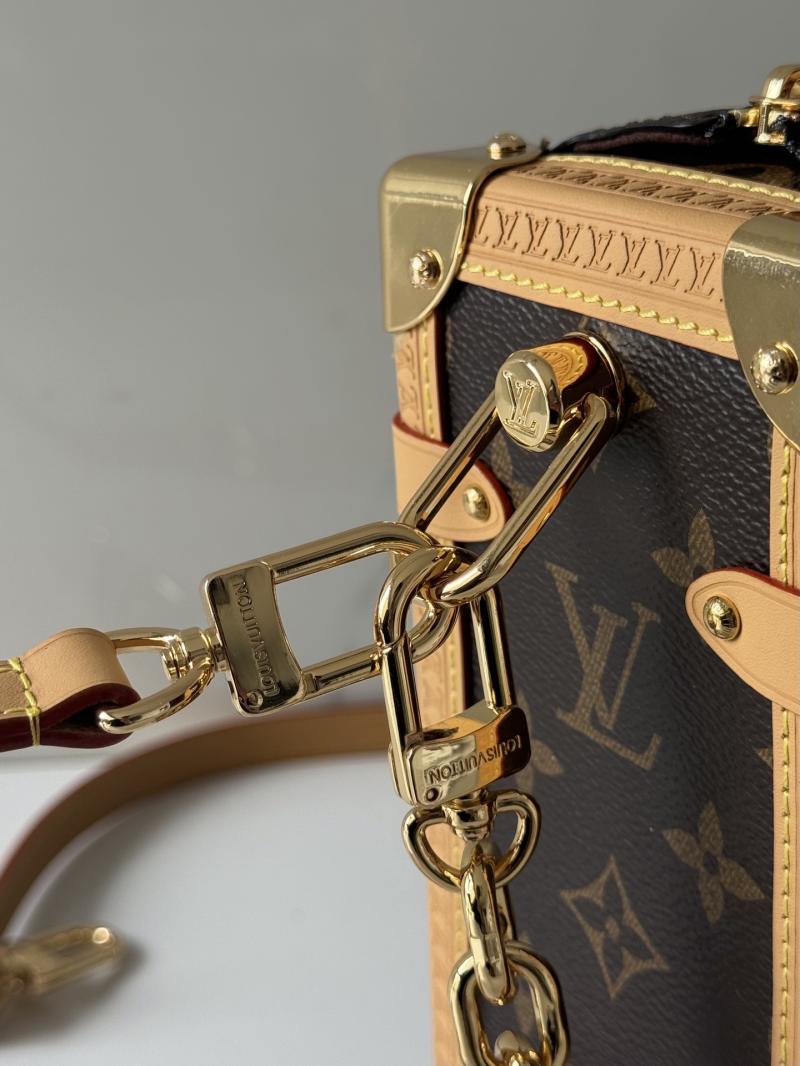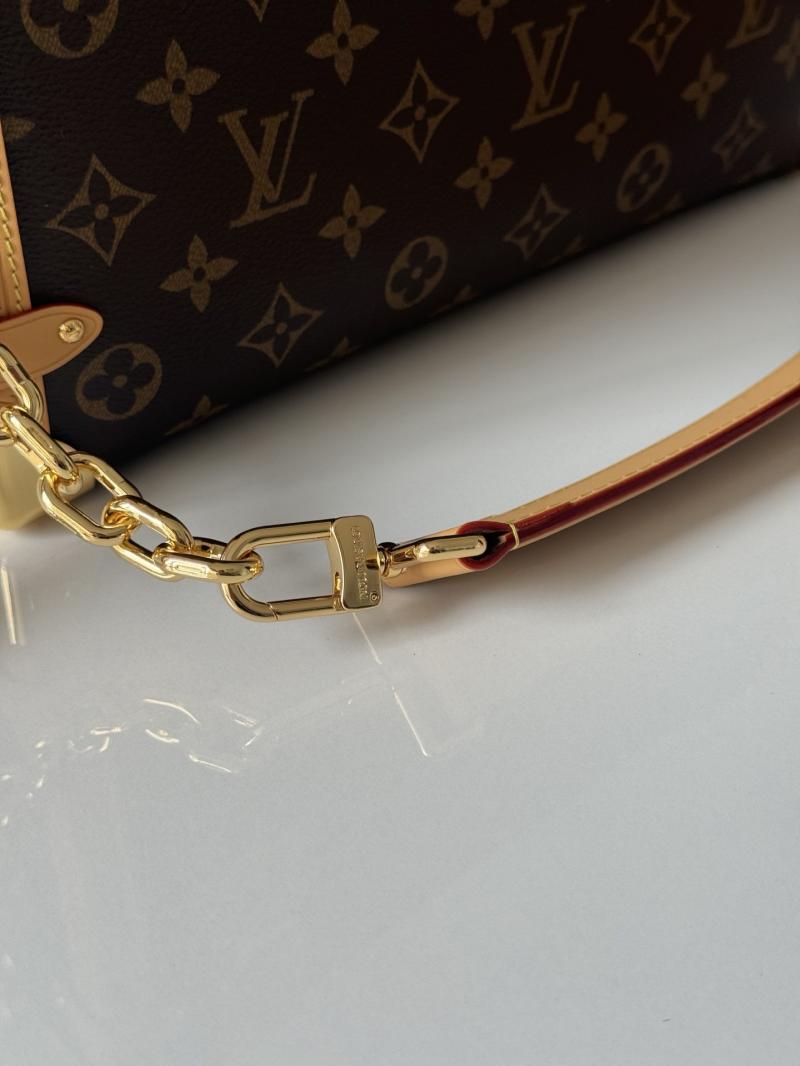 Monogram Calf leather Aged natural cowhide-leather trim Textile lining Aged-gold-tone hardware Zip closure Removable metallic tag Side lock Front flat pocket Main compartment Inside flat pocket Strap: Removable, adjustable Size: W30 x H20 x D10 cm (1" = 2.54cm) It come with serial numbers, dust bag and care booklet.