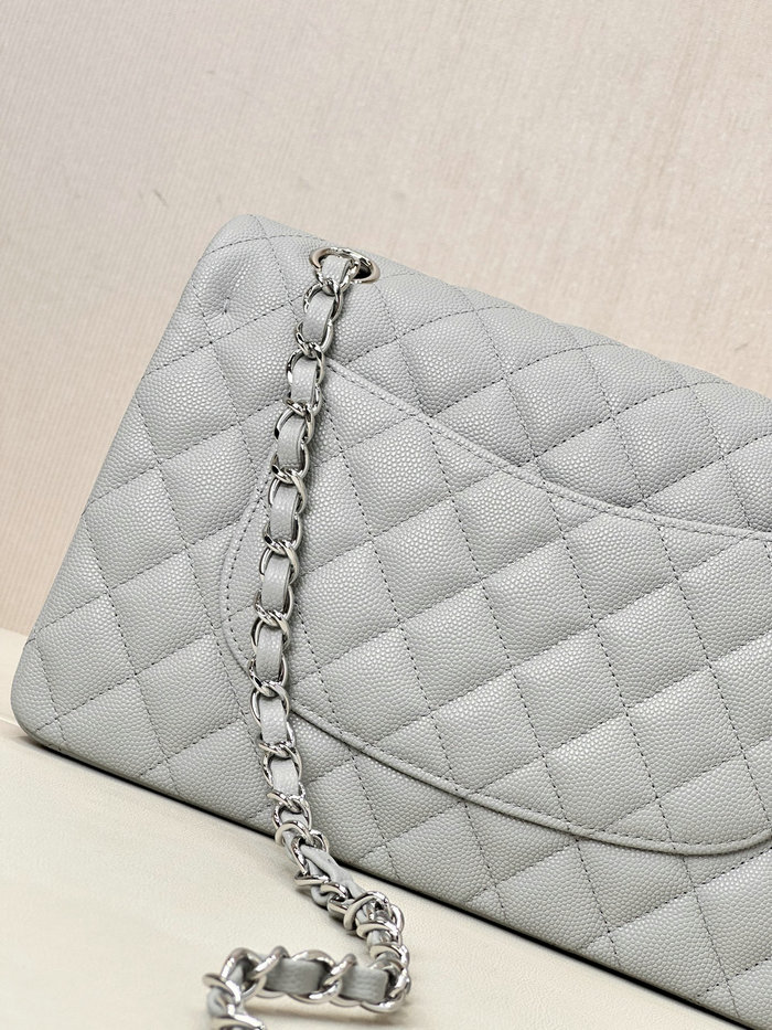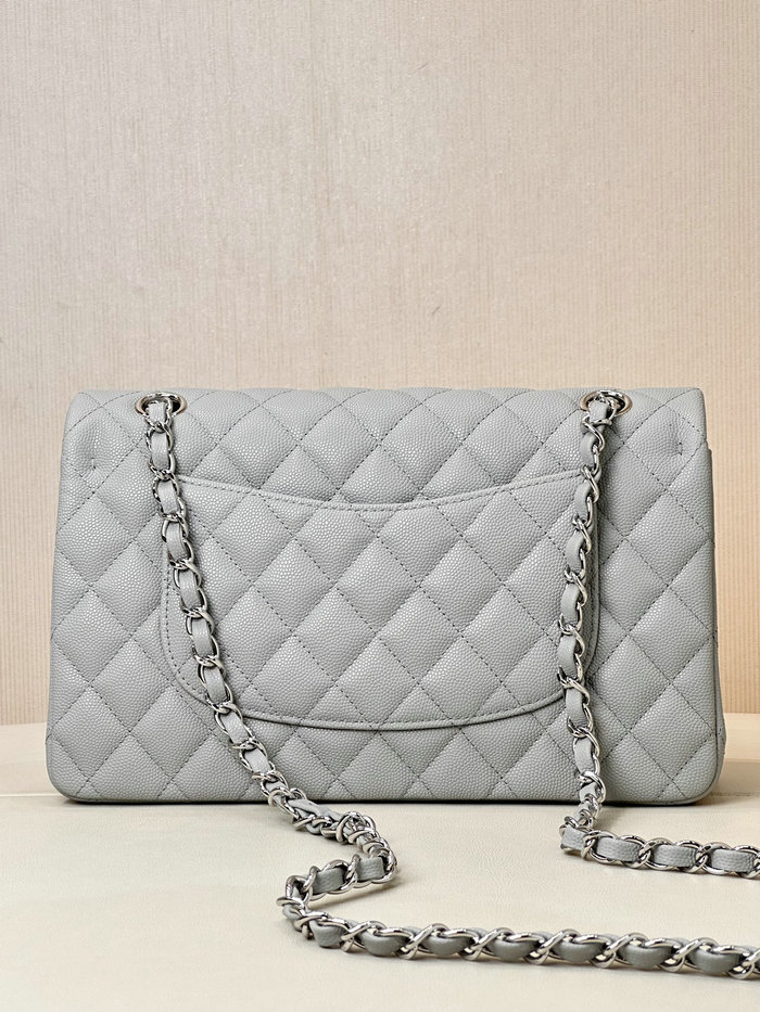 - Medium Chanel Grained Calfskin Flap Bag A01112 Grey with Silver