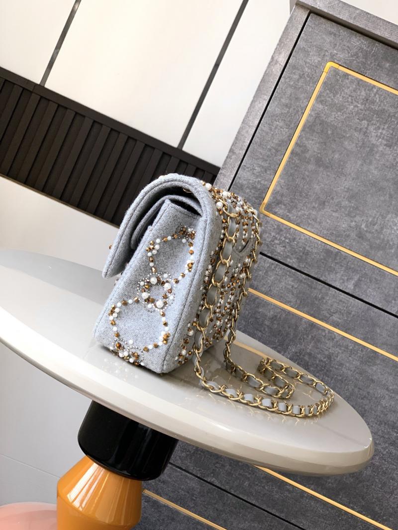 Tweed and Leather Size: W25 cm (1" = 2.54cm) It come with serial numbers, dust bag and care booklet