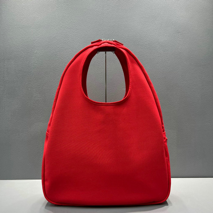 With a hole that forms the handle Embossed logo on the front and varnished metal triangle logo on the side Zipper closure Interior with zipper pocket Canvas lining Size: W48 x H65 x D12 cm (1" = 2.54cm) It come with serial numbers, card, dust bag and care booklet.