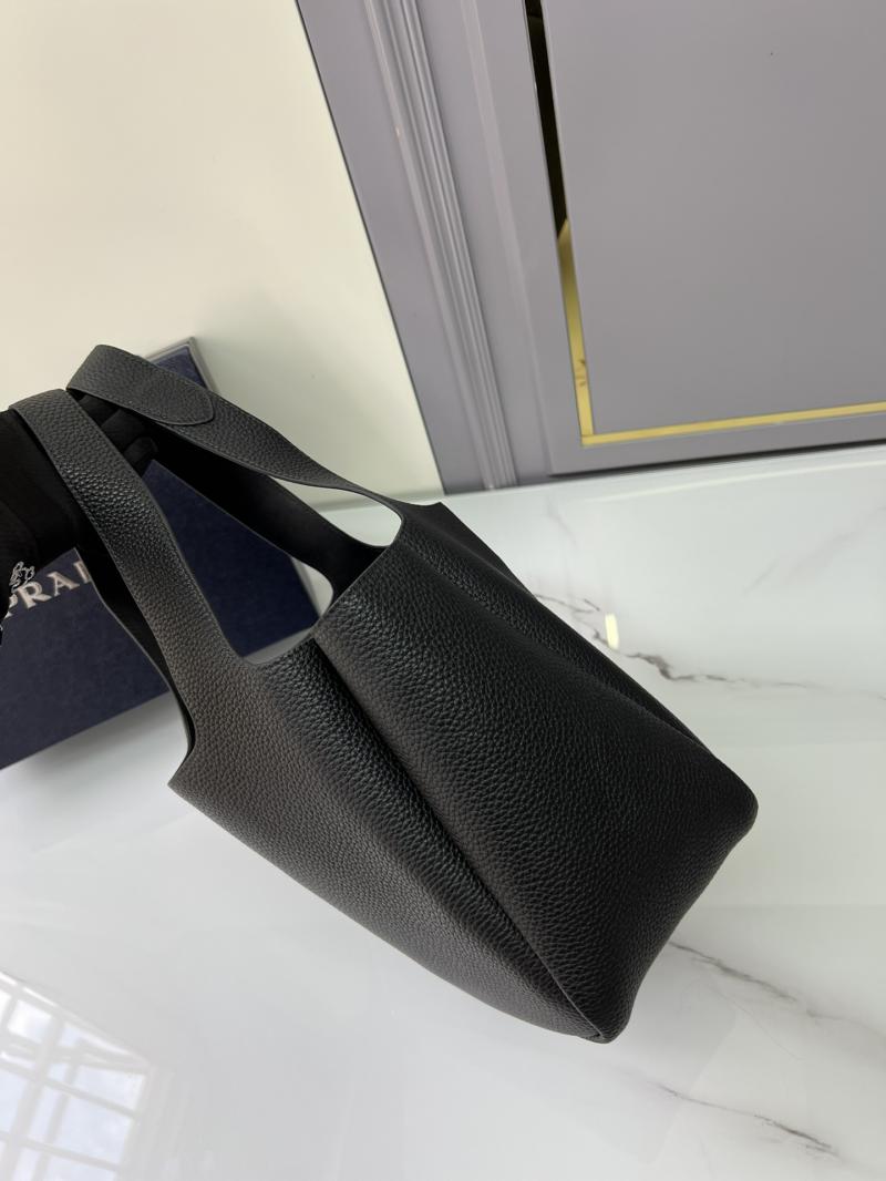 Leather Leather handles Metal lettering logo on the front Metal hardware Magnetic button closure Nappa leather interior with three compartments Size: W25 x H21.5 x D14 cm (1" = 2.54cm) It come with serial numbers, dust bag and care booklet.