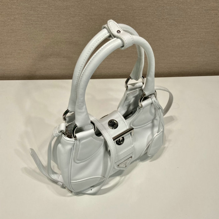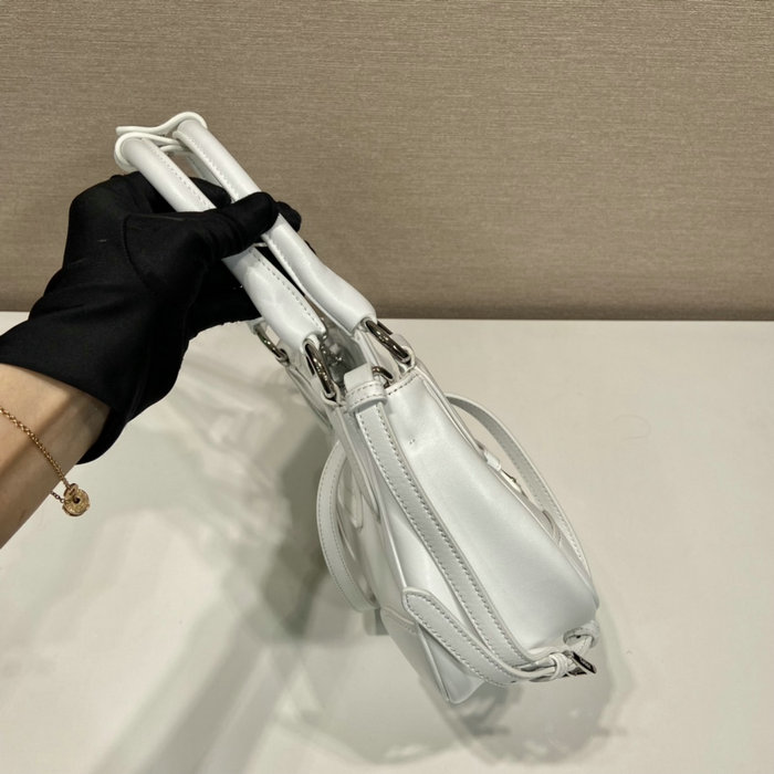 nappa leather Light padding Leather handles Detachable, adjustable leather shoulder strap, length: 100 cm Removable leather keychain Metal hardware Enameled-metal triangle logo on strap Magnetic closure Nappa-leather lining with zipped pocket Size: W12.5 x H16 x D7.5 cm It come with serial numbers, card, dust bag and care booklet.
