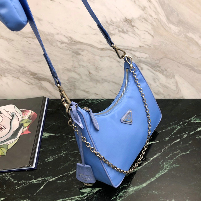Prada Nylon Hobo Bag Blue 1BH204 - Nylon and saffiano leather Size: W23 x H17 x D6 cm (1" = 2.54cm) It come with serial numbers, card, dust bag and care booklet.
