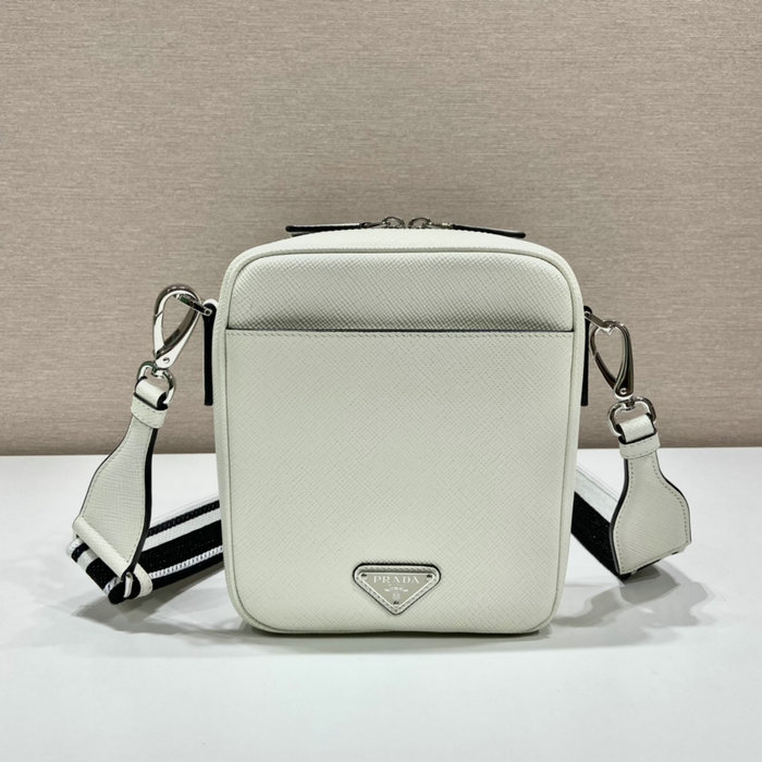 Leather Detachable, adjustable shoulder strap in embroidered webbing and leather Front embossed logo and back enameled-metal triangle Zipper closure One external pocket Interior with patch pocket Re-Nylon logo lining Size: W19 x H16 x D5.5 cm (1" = 2.54cm) It come with serial numbers, card, dust bag and care booklet.