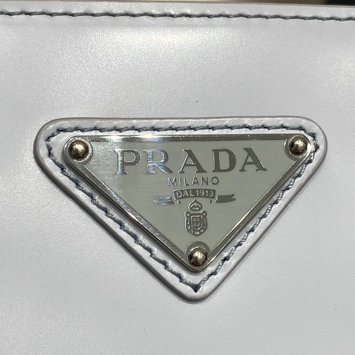 Leather handles--Detachable adjustable 110 cm leather shoulder strap Metal hardware Enameled metal triangle logo on the front Prada logo nylon lining with patch pocket Size: W15 x H17.5 x D5 cm (1" = 2.54cm) It come with serial numbers, card, dust bag and care booklet.