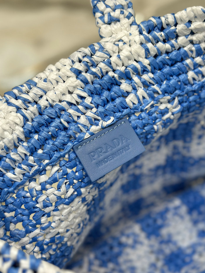 Raffia-effect yarn Crochet workmanship Embroidered lettering logo on the front and enameled metal triangle logo on the side Unlined Size: W24 x H24 x D8 cm (1" = 2.54cm) It come with serial numbers, dust bag and care booklet.