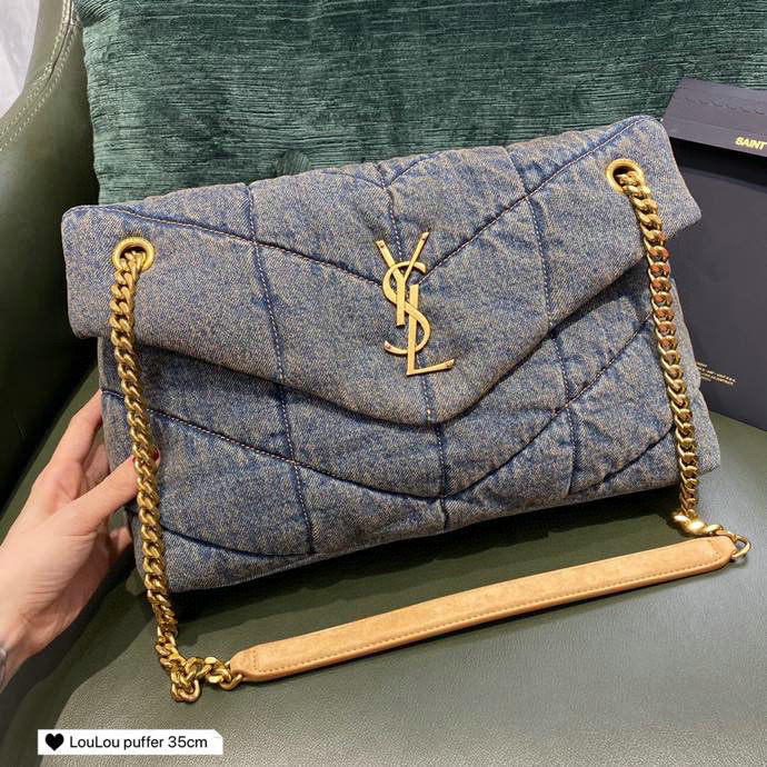 - Saint Laurent Denim Loulou Puffer Medium Bag Blue 577475