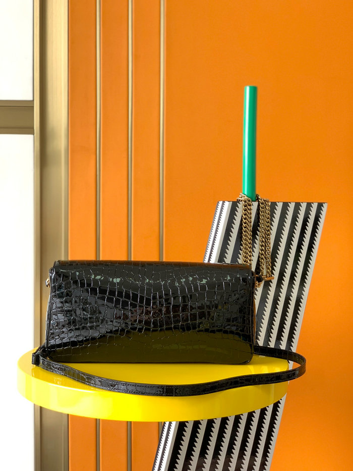 Patent Leather Size: W26 x H13.5 x D4.5 cm (1" = 2.54cm) It come with serial numbers, card, dust bag and care booklet.