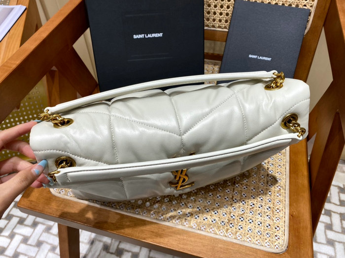 - Saint Laurent Loulou Puffer Medium Bag White with Gold 577475