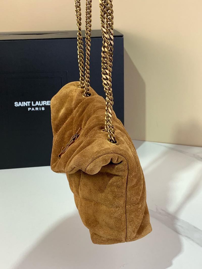 Suede Size: W19 x H20 x D6 cm (1" = 2.54cm) It come with serial numbers, dust bag and care booklet.
