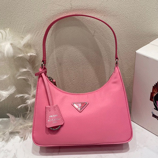 Adjustable leather handle Metal hardware Enameled metal triangle logo on the front Magnet closure Prada logo nylon lining with patch pocket Size: W30... more info
