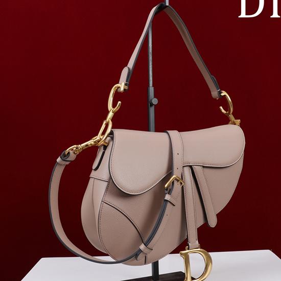 Dior Grained Calfskin Saddle Bag With Strap Taupe M0455