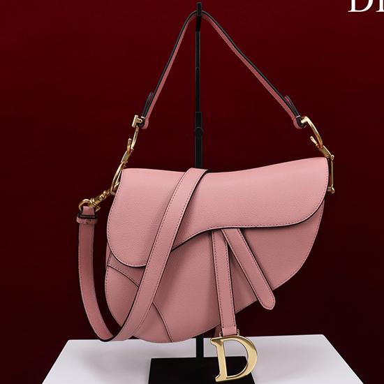 Dior Grained Calfskin Saddle Bag With Strap Rose M0455