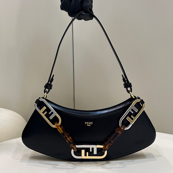 Fendi O'Lock embellished leather shoulder bag Black F8573